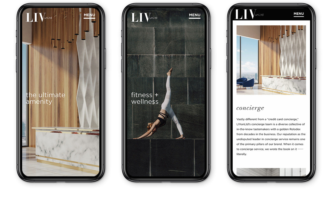 In this branding project, IF Studio was charged with creating a full new identity for the merger of three to four disparate entities within First Service as they combined their offerings for a stronger, more turnkey selling proposition. Understanding the fundamental business units and getting alignment from the diverse teams was critical to moving forward. We reached consensus around a strong new name and lifestyle-focused positioning for the newly created brand LIVunLtd. Once the new identity was created, we executed a simple, easy to manage and navigate website populated with fresh lifestyle imagery (a combination of original and stock photography).